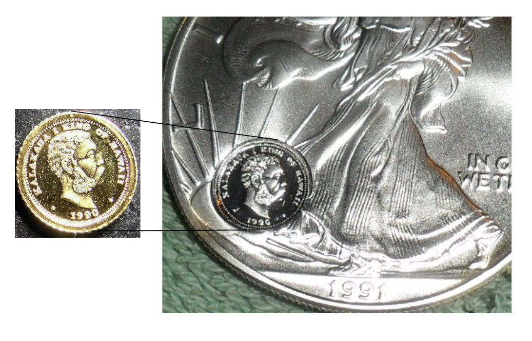 - As a background note, the Royal Hawaiian Mint struck gold in 17mm diameter (1/10 ounce) and 13mm (1/20 ounce).