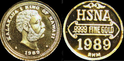 3. 1989 King Kalakaua 13 mm dies (100 – 13 mm 1989 Kalakaua HSNA gold coins)