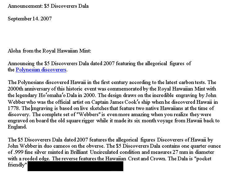 The 1975 struck sterling silver Kamehameha I – Welt with “AG hand stamped” and no “sterling hand stamp” has a mintage of 6 (note: year on the coin is 1976). This coin type is the 5th listed to be ever struck by The Hawaiian Mint (according to the RHM database).