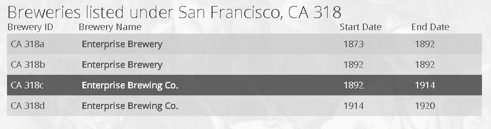 Brewer collectors have assigned the CA 318 identifier to brand name “Enterprise Beer”. The years align with the 1893 date from the news clipping above.