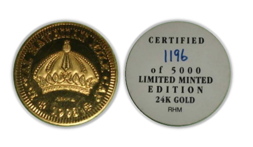 Listed in Waifs in Gold Boots (aka Royal Hawaiian Mint database). This is the Hawaiian Crown issue (one of four designs). The original issue price was $95 for the four different designs.