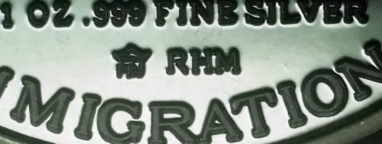2) Hallmark on the reverse of the coin is RHM (bottom image).