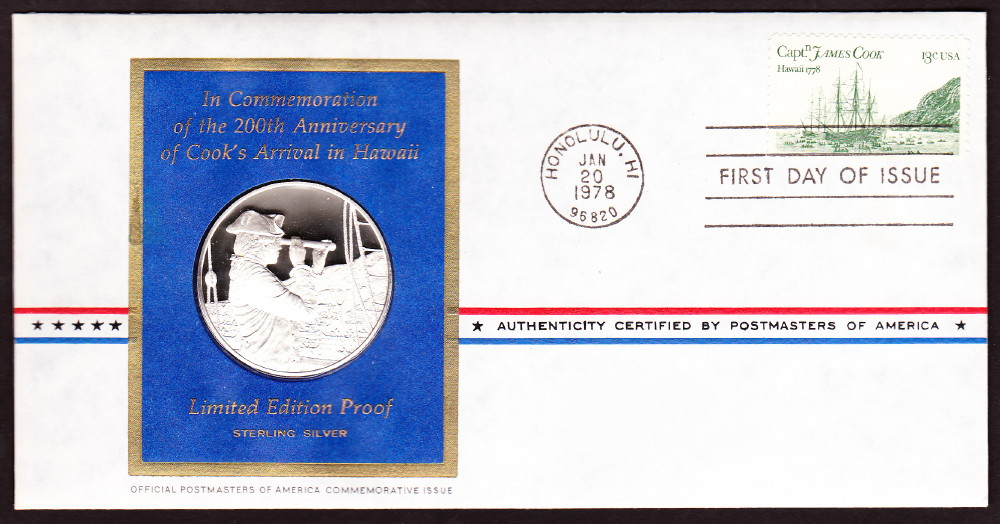 Medcalf and Russell cataloged only a few of the Hawaiian related medals originally issued on US Postal covers created by the Franklin Mint. In fact, they never acknowledged that these medals were actually part of Postal Covers. Below are the complete set of Franklin Mint’s Hawaii related Postal Cover medals up to the year 1984. Note the 1984 year, as the Medcalf and Russell book 2nd edition was published in 1991, hence the unlisted medals identified in this blog entry were mistakenly left out of their book.
